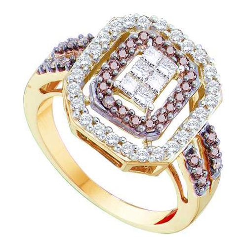 REF-89M9H --- 0.75CTW White and Champagne Diamond Invisible 14KT Ring Yellow Gold - SKU: 51850