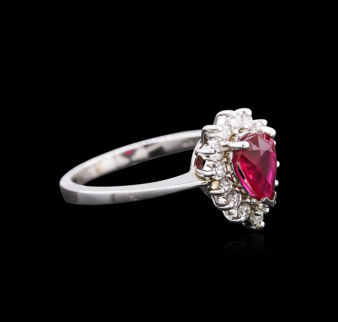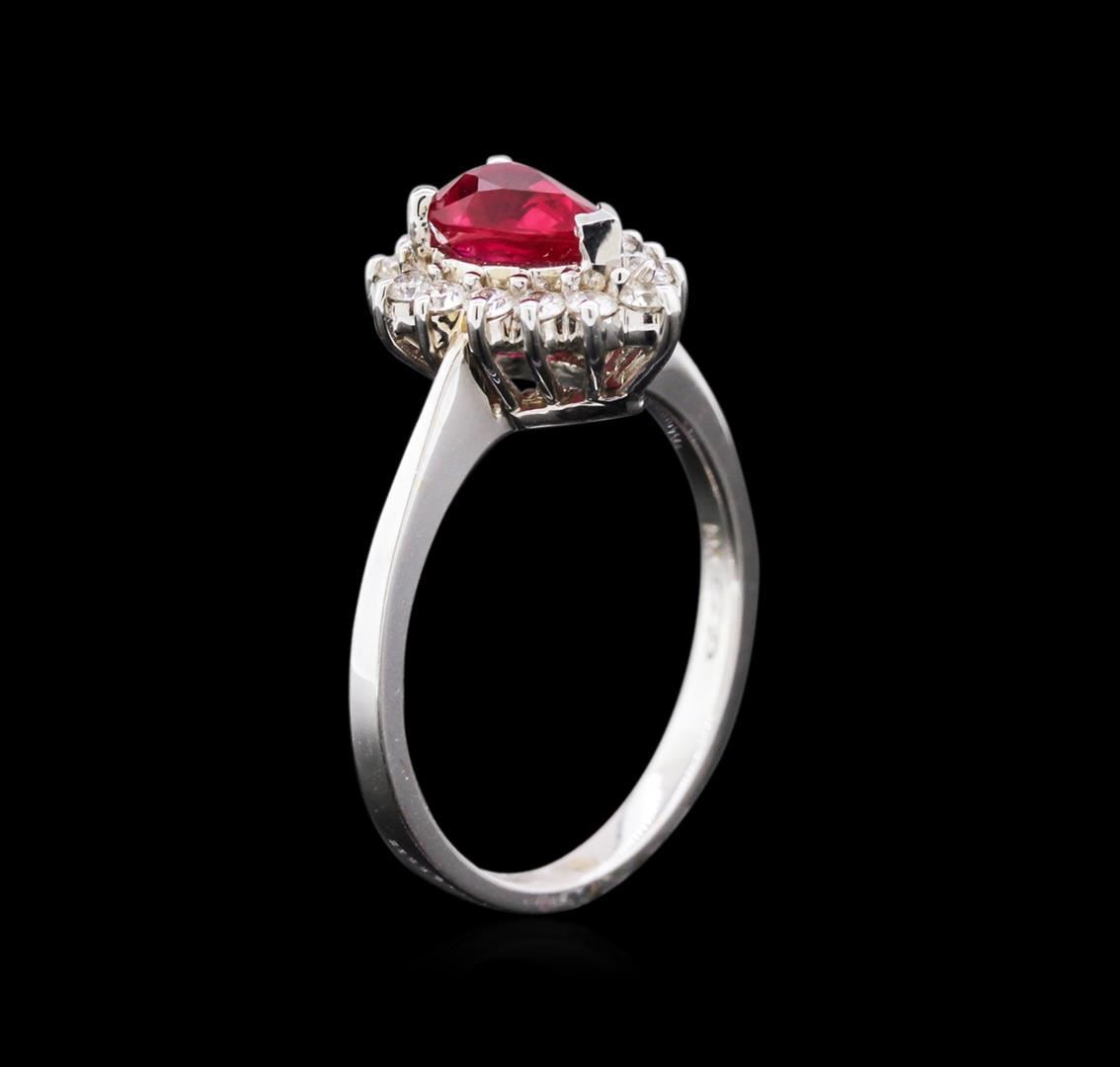 One ring featuring: 18KT white gold weighing 2.60 grams containing one ruby center stone with a total weight of 0.75ct and 14 brilliant cut diamonds with a total weight of 0.32ct.