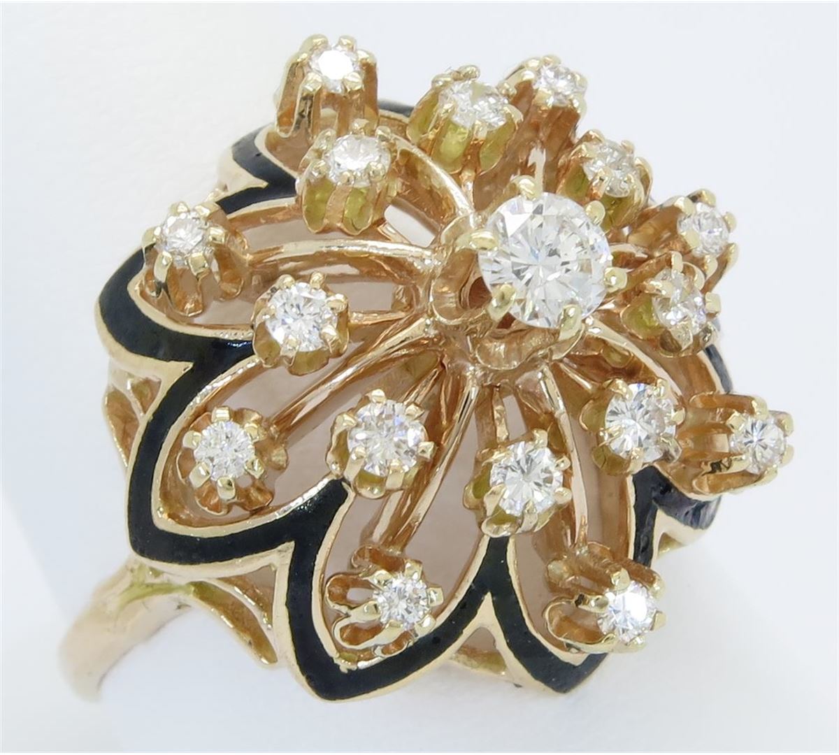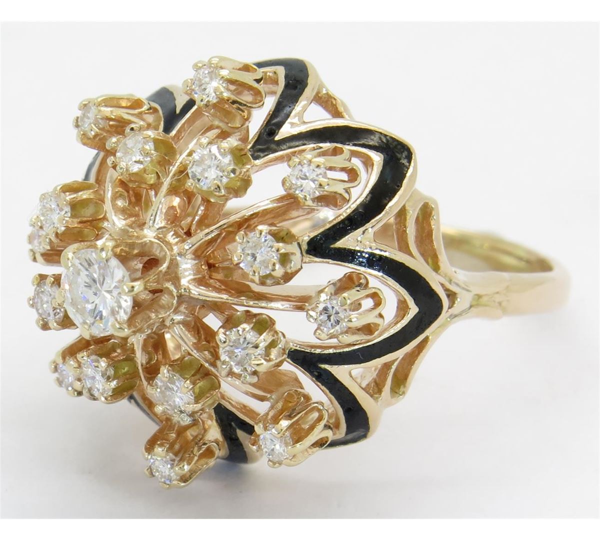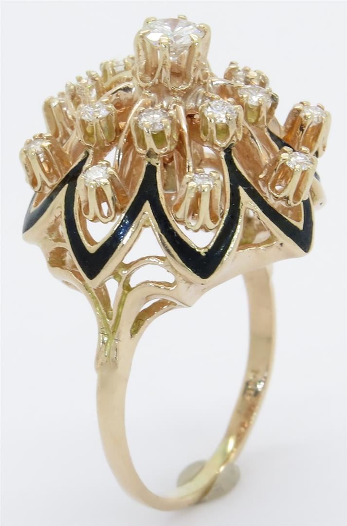 One tested 14K yellow gold diamond ring. Containing: 17 Round Brilliant Cut Diamonds. Approximate total diamond weight: 3/4CTW. Diamonds are graded in the mounting, unless otherwise stated. Weight: 9.4 grams. Size: 8.25