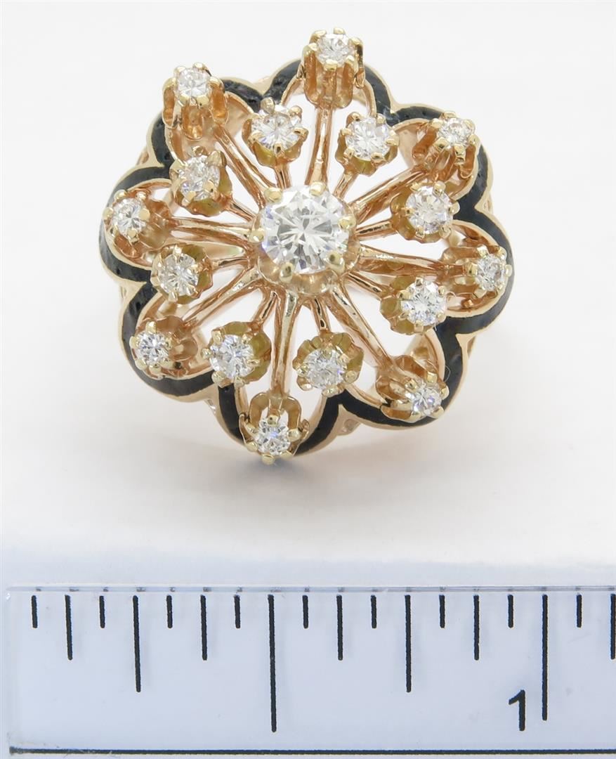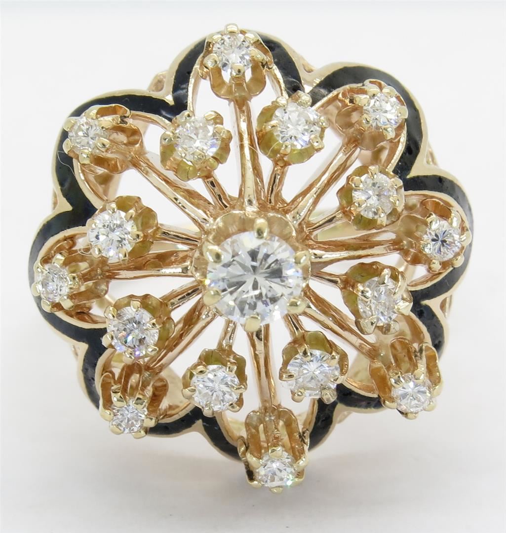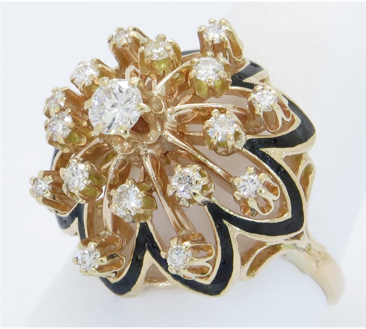 One tested 14K yellow gold diamond ring. Containing: 17 Round Brilliant Cut Diamonds. Approximate total diamond weight: 3/4CTW. Diamonds are graded in the mounting, unless otherwise stated. Weight: 9.4 grams. Size: 8.25