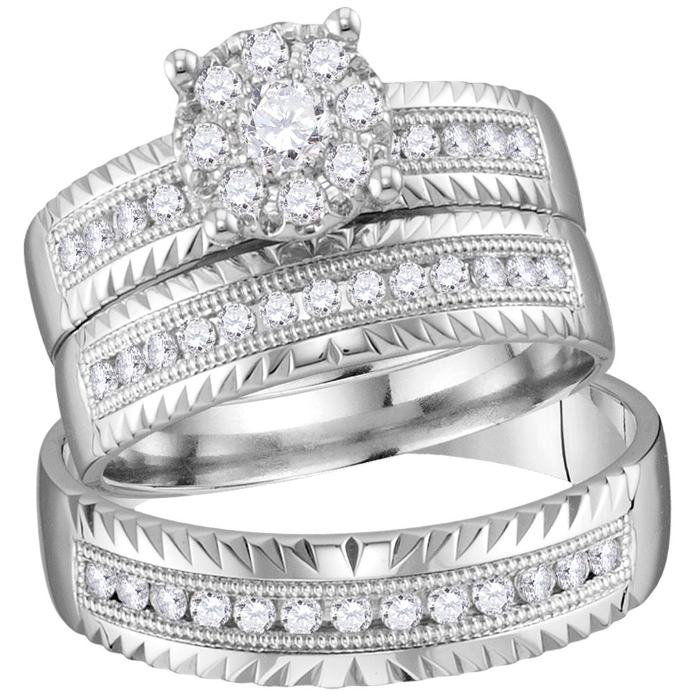 REF-132F2N- SKU: GD113875 ---- 0.76 CTW His & Hers Diamond Cluster Matching Bridal Ring 14KT White Gold