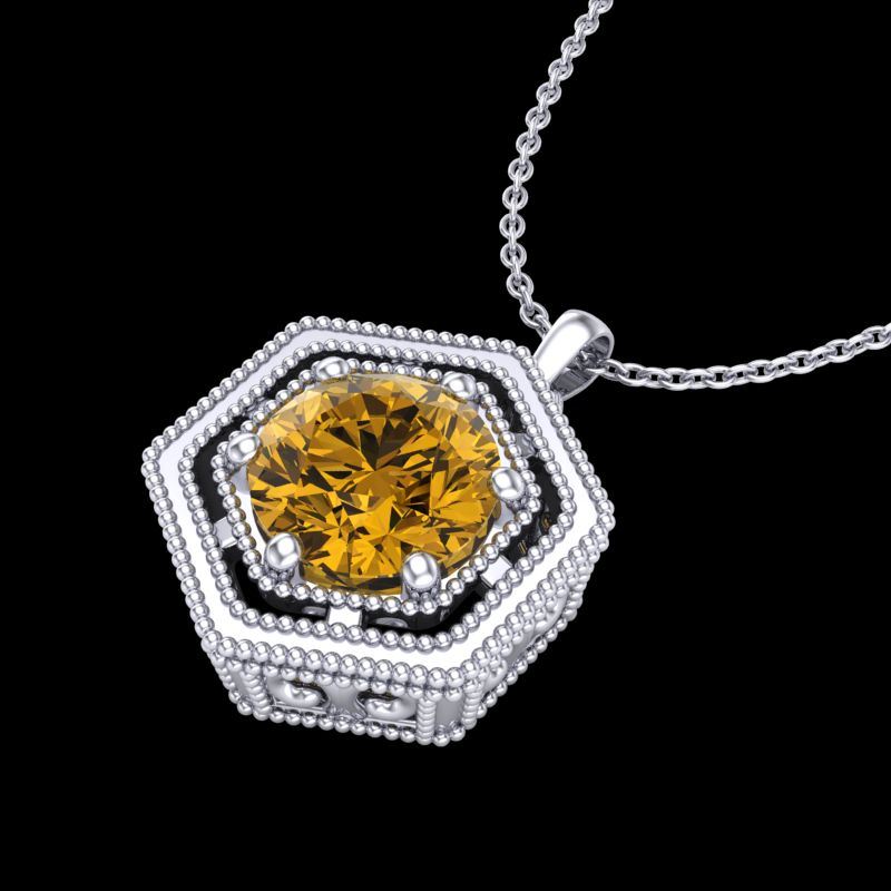 REF-94W5F -37518 ---- 0.76 CTW Intense Fancy Yellow Diamond Art Deco Stud Necklace 18K White Gold ---- Luxury Designer Brand NECKLACE Appraised at $5,700 Certificate Number US37518 18k White gold, NECKLACE Size is 16 Inches, NECKLACE measuring approx. Uniform, weighing in total approx. 3.5 grams. Made in the USA and is stamped 18k, Main stone 0.76 carat total weight containing 1 pieces of Intense Fancy Yellow color with SI quality Round shape cut Diamond , Stone #2 carat total weight containing pieces of color with quality shape cut