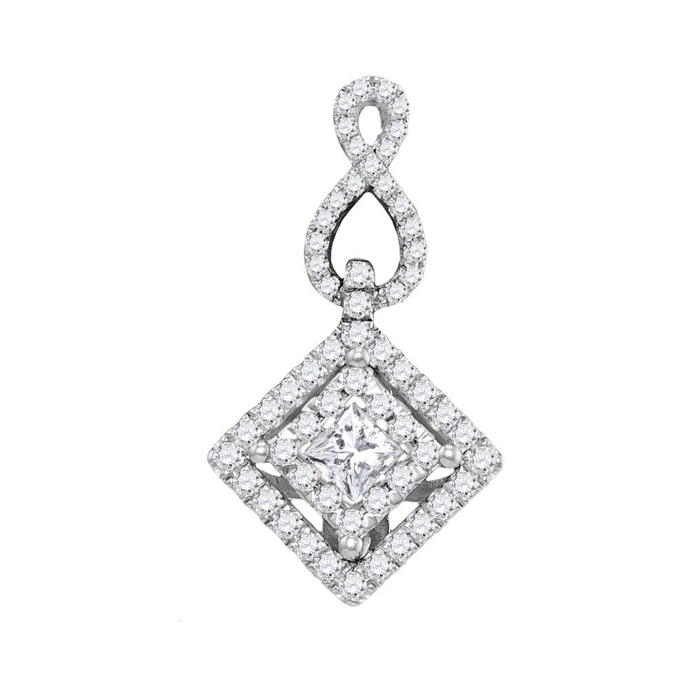 REF-89N9F- SKU: GD104802 ---- 0.76 CTW Princess Diamond Square Pendant 14KT White Gold