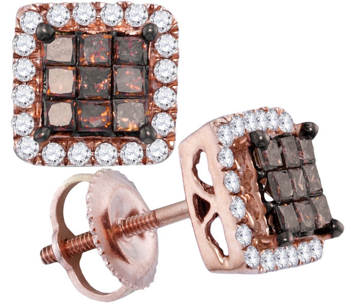REF-55H3X ---- 0.76 CTW Princess Red Colored Diamond Square Cluster Earrings 10K Rose Gold - SKU: GD113109