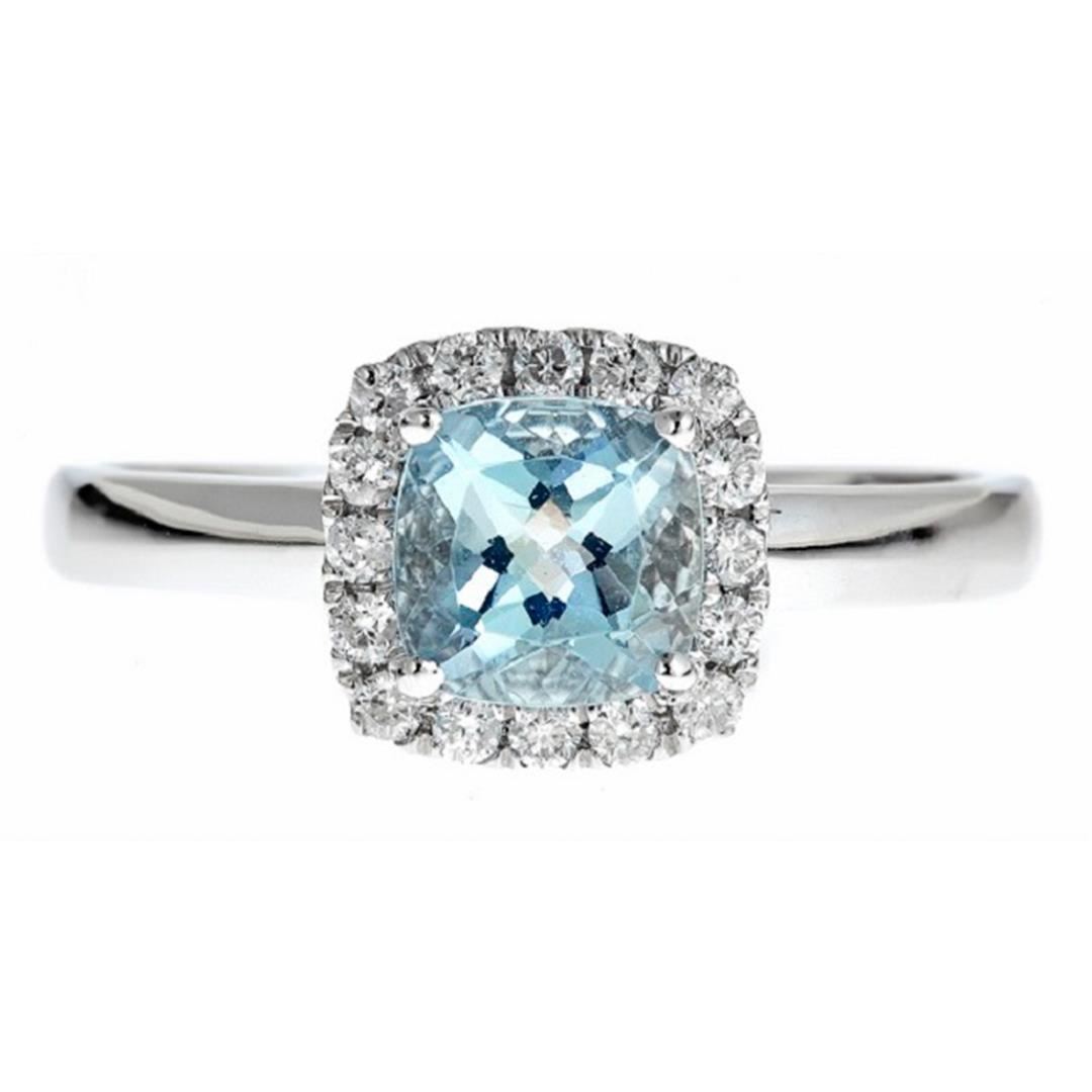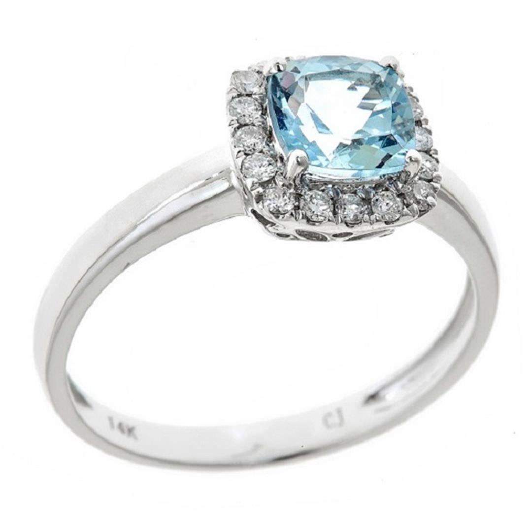 One Ring featuring: 14KT White Gold weighing 0.3 grams containing Aquamarine with an approximate weight of 0.76ct, Diamond with an approximate weight of 0.18ct, and with an approximate weight of ct.