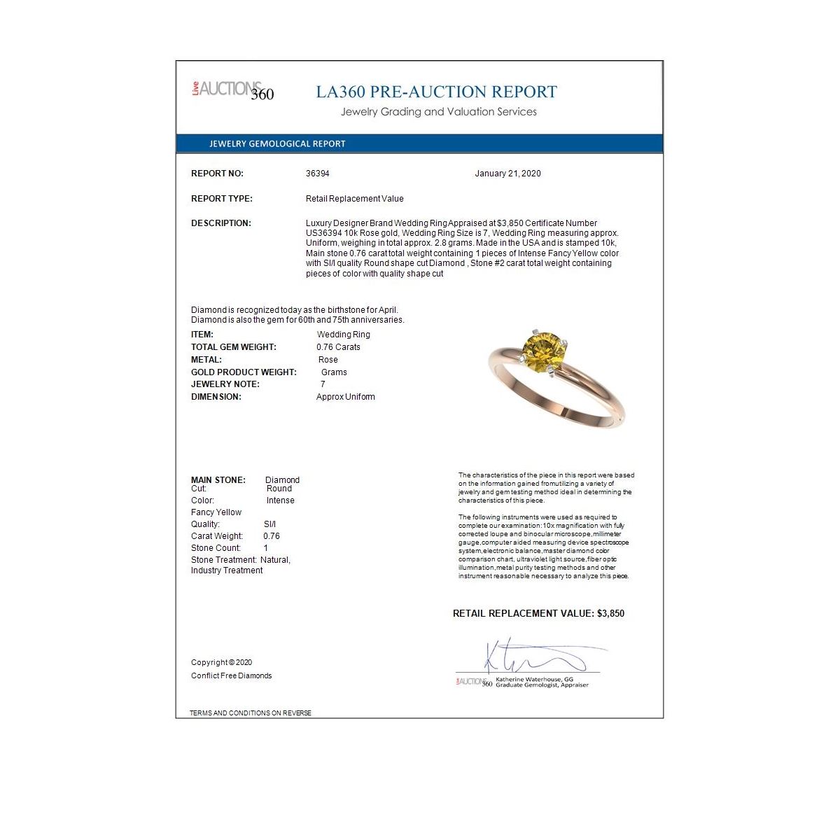 REF-67G5W - SKU: 36394 ---- 0.76 ctw Certified Intense Yellow Diamond Engagment Ring 10k Rose Gold