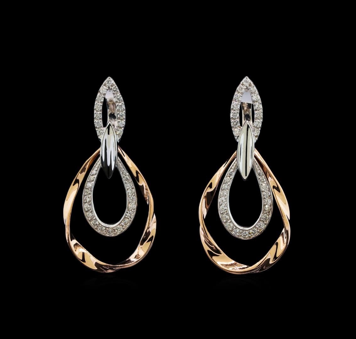 One Pair of earrings : 14KT rose and white gold weighing 7.27gm containing diamonds with a total weight of 0.76ct.