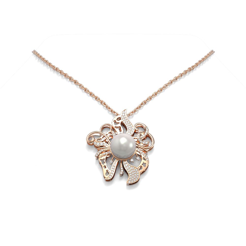 REF-134X5A - SKU: 55344 ---- 0.76 ctw Diamond & Pearl Necklace 18K Rose Gold