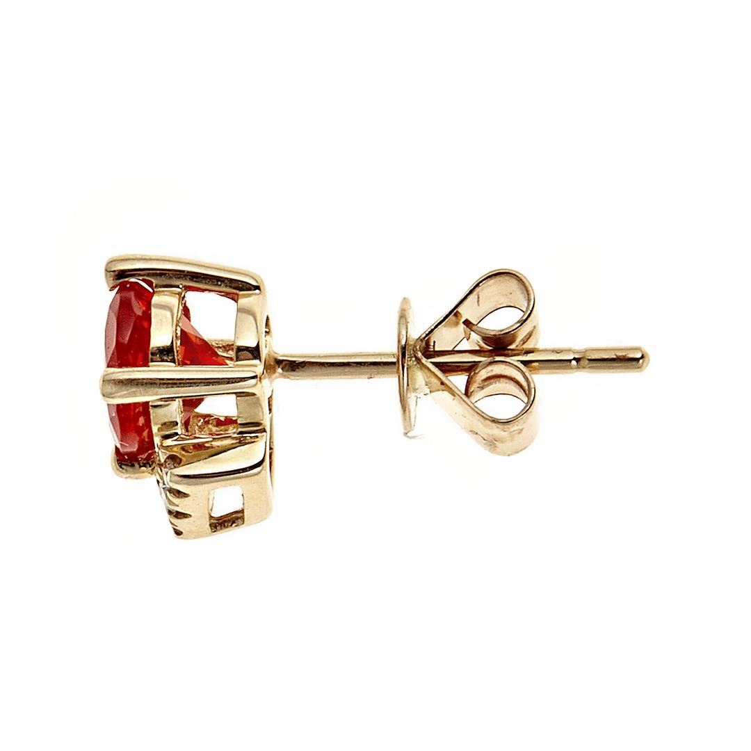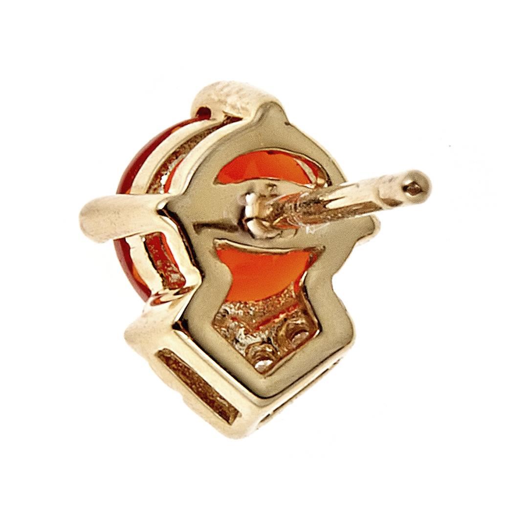 One pair of earrings featuring: 14KT yellow gold weighing 1.44 grams containing two marquise cut fire opal with a total weight of 0.76 ctw and diamonds weighing a total of 0.05 ctw.