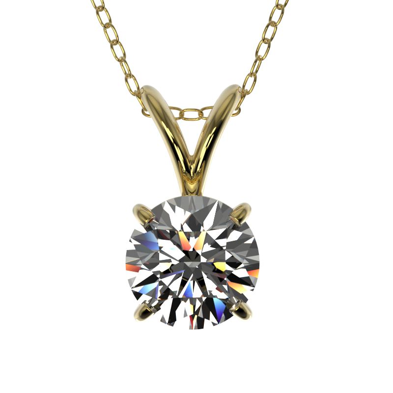 REF-97H5A -36741 ---- 0.77 CTW Certified H-SI/I Quality Diamond Solitaire Necklace 10K Yellow Gold ---- Luxury Designer Brand Necklace Appraised at $6,500 Certificate Number US36741 10k Yellow gold, Necklace Size is 16 Incehs, Necklace measuring approx. Uniform, weighing in total approx. 2 grams. Made in the USA and is stamped 10k, Main stone 0.77 carat total weight containing 1 pieces of H-I color with SI/I quality Round shape cut Diamond , Stone #2 carat total weight containing pieces of color with quality shape cut