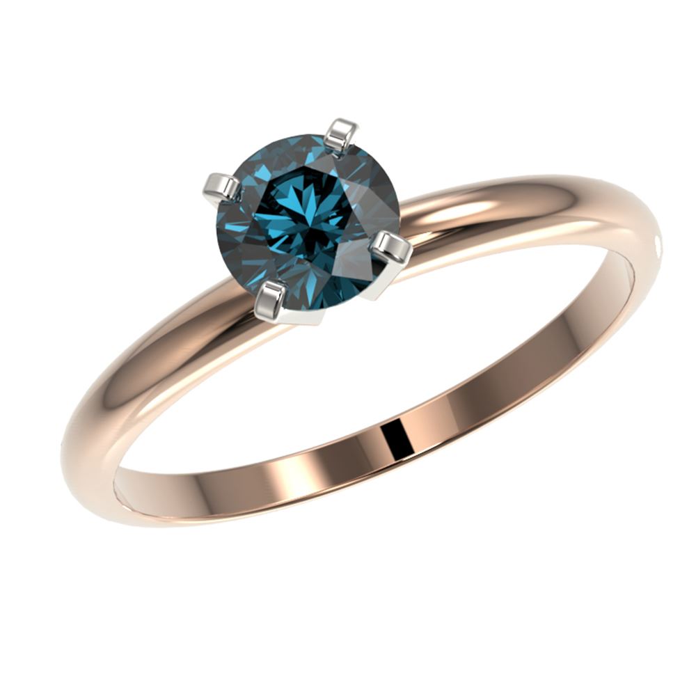SKU: 36392 ---- 0.77 ctw Certified Intense Blue Diamond Engagment Ring 10k Rose Gold