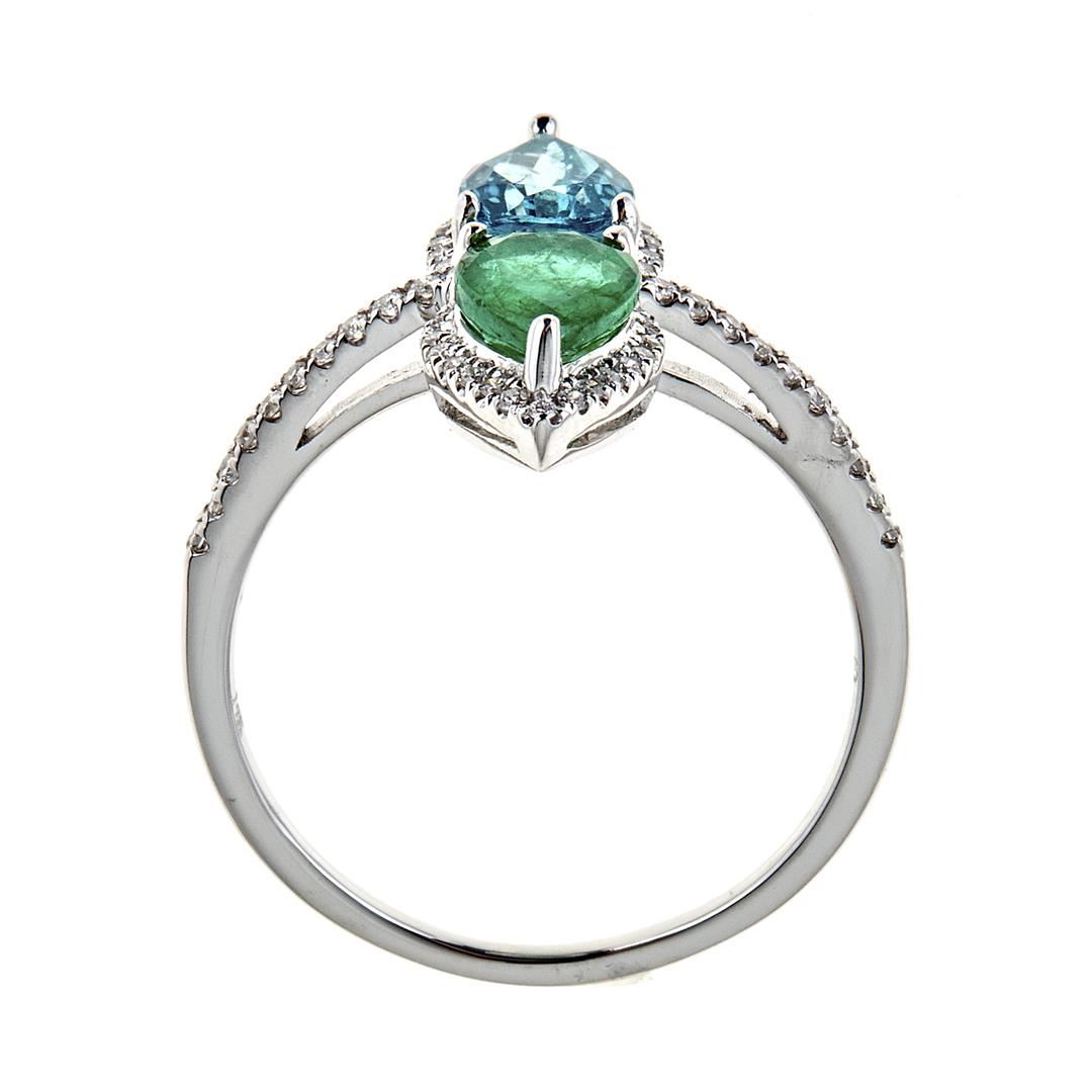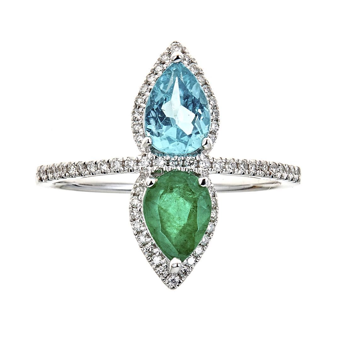 One ring featuring: 14KT white gold weighing 2.23 grams containing one pear cut emerald with a total weight of 0.77 ct and diamonds weighing a total of 0.19 ctw.
