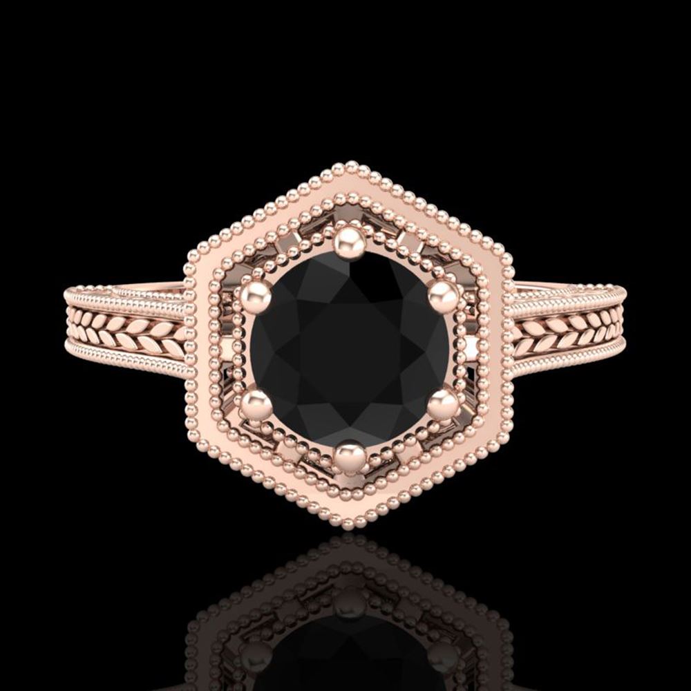 REF-52A8N - SKU: 37500 ---- 0.77 ctw Fancy Black Diamond Engagment Art Deco Ring 18k Rose Gold