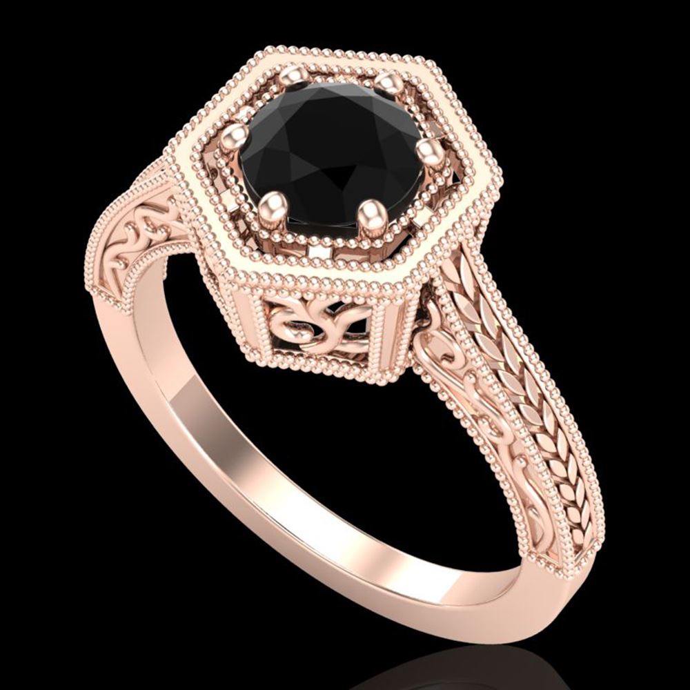 REF-52A8N - SKU: 37500 ---- 0.77 ctw Fancy Black Diamond Engagment Art Deco Ring 18k Rose Gold