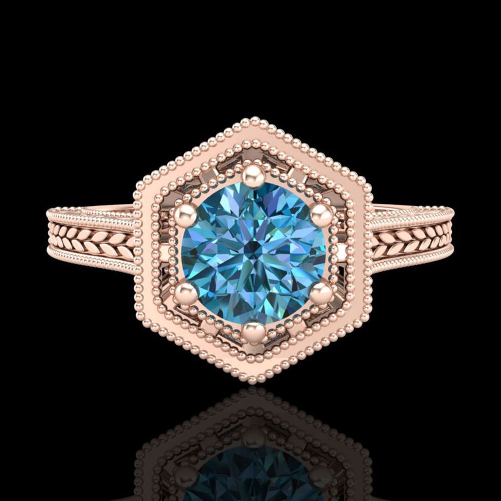REF-130N9F - SKU: 37503 ---- 0.77 ctw Fancy Intense Blue Diamond Art Deco Ring 18k Rose Gold