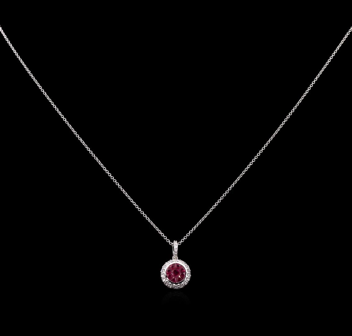 One pendant with chain featuring: 14KT white gold weighing 2.50 grams containing rubies with a total weight of 0.77ct and diamonds with a total weight of 0.46ct.