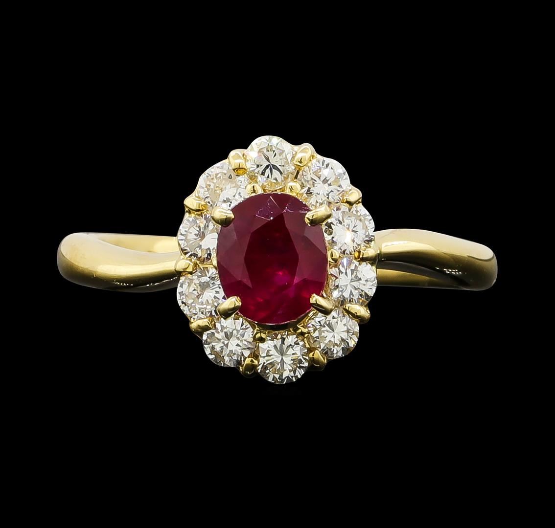 One ring featuring: 18KT Yellow Gold containing Ruby with a total weight of 0.77ct and Diamonds with a total weight of 0.52ct. Total Weight of Ring: 3.5 grams.