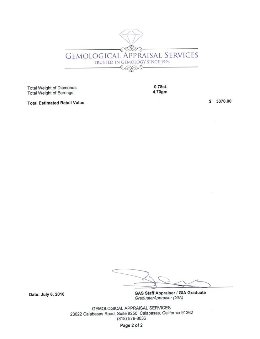Regarding Appraised Jewelry, Watches and Loose Stones –