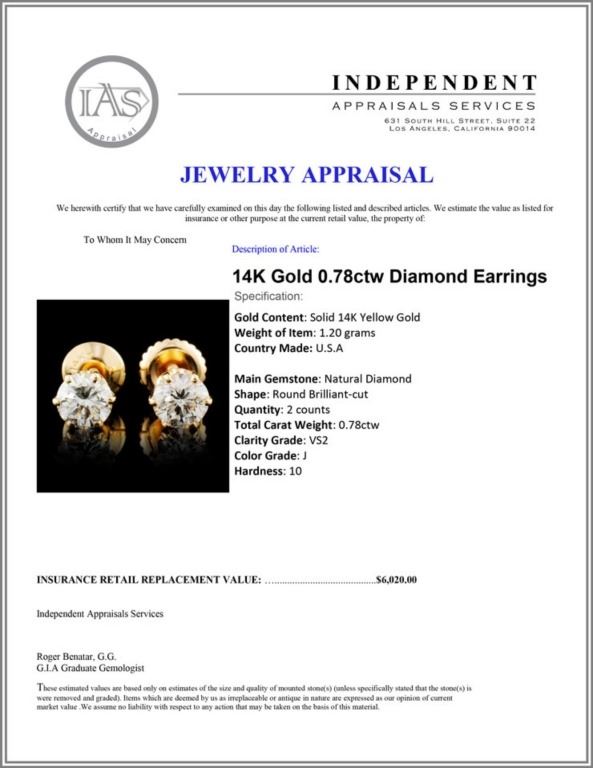 Regarding Appraised Jewelry and Loose Stones - Auctionfarm sends them out to a third party for Retail Replacement Value Appraisals, which are the most common. These types of evaluations are written for insurance needs. This would be the cost to replace the jewelry with an item of equal quality and kind, considered to be the current market price or the replacement value. This type of appraisal is done to protect you in the event of damage or loss of a valuable item. Our appraisals are conducted by independent 3rd Party appraisal firms that utilizes Certified GIA Gemologist. Appraisals should be used for verification of gemstone and/or metal weight, size, and grade only, not actual value. Appraisal value should be considered for insurance purposes only, not actual value, as price varies greatly from retail locations thru out the world. Items should not be purchased with the expectation to resell for appraisal price, or for profit.