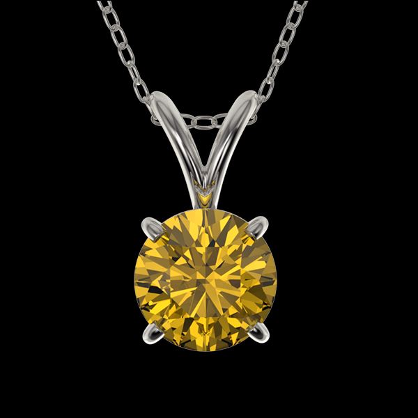 REF-100X5T -36748 ---- 0.79 CTW Certified Intense Yellow SI Diamond Solitaire Necklace 10K White Gold ---- Luxury Designer Brand Necklace Appraised at $7,350 Certificate Number US36748 10k White gold, Necklace Size is 16 Incehs, Necklace measuring approx. Uniform, weighing in total approx. 2 grams. Made in the USA and is stamped 10k, Main stone 0.79 carat total weight containing 1 pieces of Intense Fancy Yellow color with SI quality Round shape cut Diamond , Stone #2 carat total weight containing pieces of color with quality shape cut
