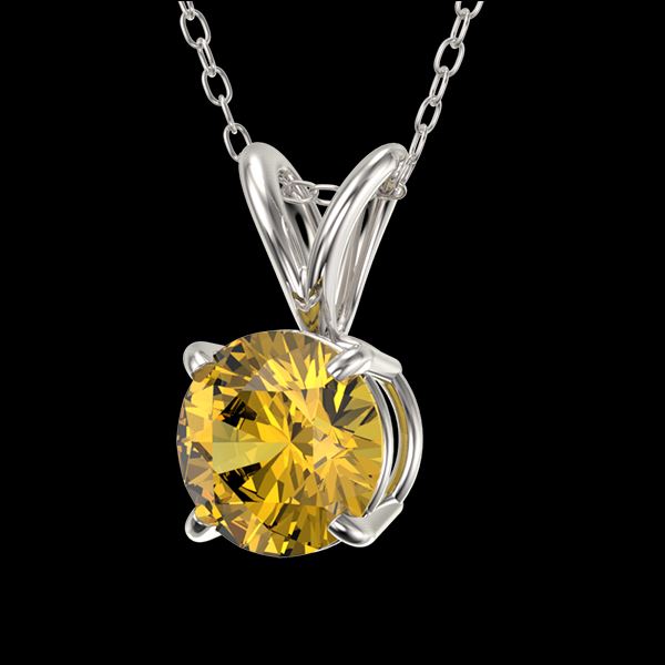 REF-100X5T -36748 ---- 0.79 CTW Certified Intense Yellow SI Diamond Solitaire Necklace 10K White Gold ---- Luxury Designer Brand Necklace Appraised at $7,350 Certificate Number US36748 10k White gold, Necklace Size is 16 Incehs, Necklace measuring approx. Uniform, weighing in total approx. 2 grams. Made in the USA and is stamped 10k, Main stone 0.79 carat total weight containing 1 pieces of Intense Fancy Yellow color with SI quality Round shape cut Diamond , Stone #2 carat total weight containing pieces of color with quality shape cut