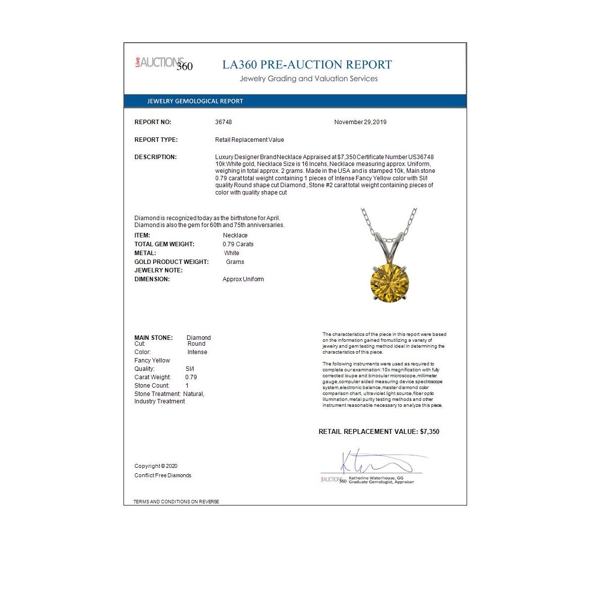REF-82Y2X - SKU: 36748 ---- 0.79 ctw Certified Intense Yellow Diamond Necklace 10k White Gold