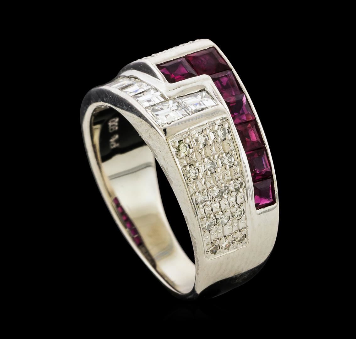 One ring featuring: Platinum containing Ruby with a total weight of 0.79ct and Diamonds with a total weight of 0.85ct. Total Weight of Ring: 8.2 grams.