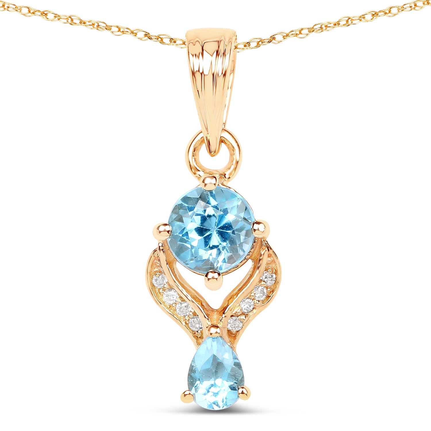 REF-28R4K ---- 0.79 ctw Swiss Blue Topaz & Diamond Pendant 14K Yellow Gold