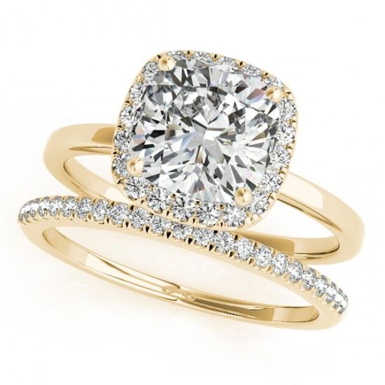 REF-143K5W -31408 ---- 0.8 CTW Certified VS/SI Cushion Diamond 2Pc Set Solitaire Halo 14K Yellow Gold ---- Luxury Designer Brand 2 Pc Set Appraised at $6,300 Certificate Number US31408 14k Yellow gold, 2 Pc Set Size is 7, 2 Pc Set measuring approx. Uniform, weighing in total approx. 6.3 grams. Made in the USA and is stamped 14k, Main stone 0.5 carat total weight containing 1 pieces of H-J color with VS/SI quality Cushion shape cut Diamond , Stone #2 0.12 carat total weight containing 18 pieces of H-I color with VS/SI quality Round shape cut Diamond , Stone #3 0.18 carat total weight containing 23 pieces of G-H color with VS/SI quality Round shape cut Diamond