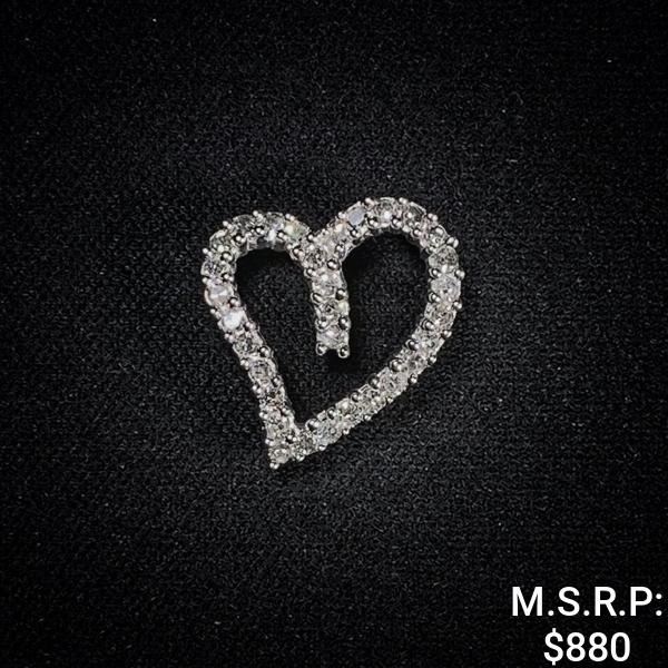 0.8 DWT 10 KT Wht Gold Hrt Pendant w/ Dimd Lining