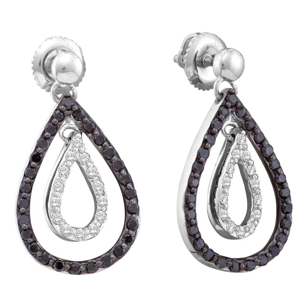 REF-52W4K- SKU: GD54594 ---- 0.80 CTWBlack Color Diamond Double Teardrop Dangle Earrings 14KT White Gold