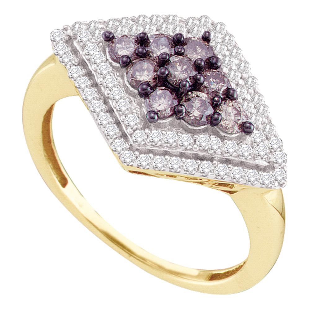 REF-32F9N- SKU: GD58882 ---- 0.80 CTWCognac-brown Color Diamond Diagonal Cluster Ring 10KT Yellow Gold