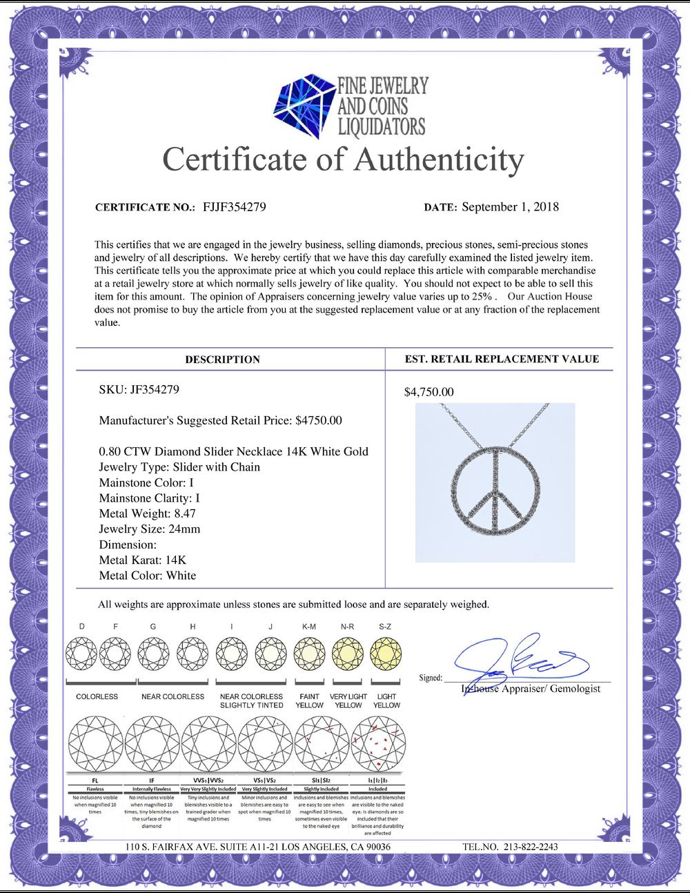All Gia and EGL Diamonds are subject to availability due to consignors’ terms with us.