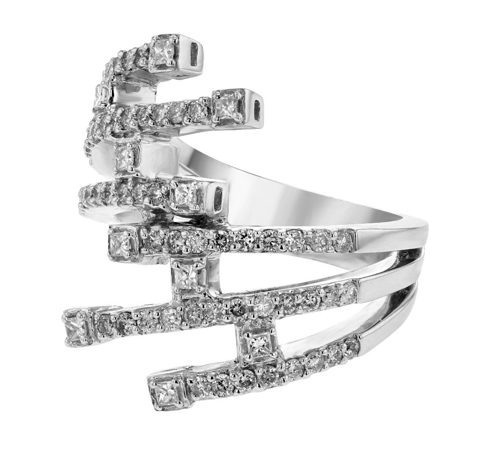 REF-132F5N - JF217756 ---- 0.8 CTW White Round Diamond & Princess Diamond Ring 18K White Gold