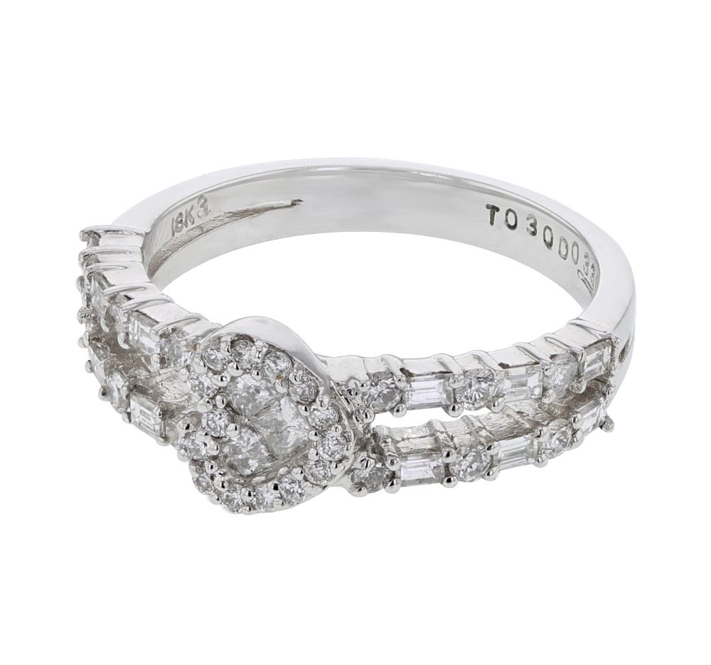 REF-84K2W - JF209279 ---- 0.8 CTW White Round Diamond & Baguette Ring 18K White Gold