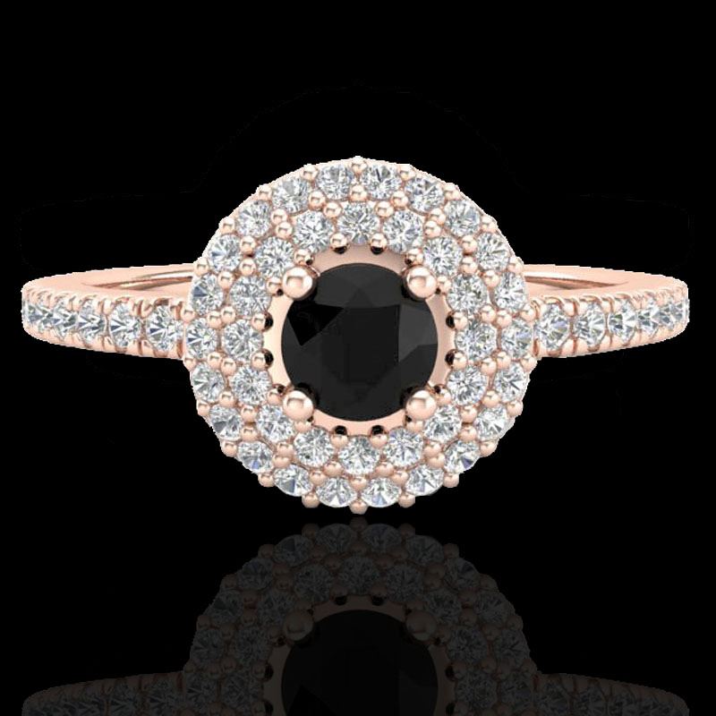REF-58W2F -20892 ---- 0.80 CTW Micro VS/SI Diamond Designer Ring 14K Rose Gold ---- Luxury Designer Brand Ring Appraised at $3,500 Certificate Number US20892 14k Rose gold, Ring Size is 7, Ring measuring approx. 6/16" X 6/16" , weighing in total approx. 3.2 grams. Made in the USA and is stamped 14k, Main stone 0.35 carat total weight containing 1 pieces of Black Opaque color with VS quality Round shape cut Diamond , Stone #2 0.45 carat total weight containing 52 pieces of H-I color with VS/SI quality Round shape cut Diamond