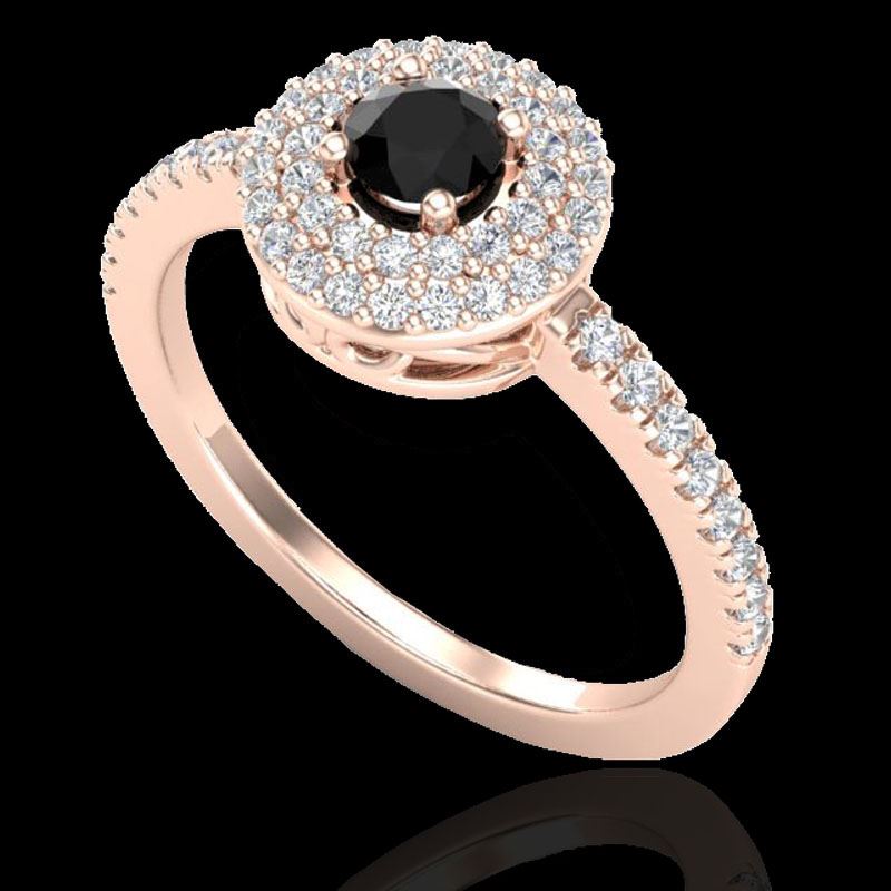 REF-58W2F -20892 ---- 0.80 CTW Micro VS/SI Diamond Designer Ring 14K Rose Gold ---- Luxury Designer Brand Ring Appraised at $3,500 Certificate Number US20892 14k Rose gold, Ring Size is 7, Ring measuring approx. 6/16" X 6/16" , weighing in total approx. 3.2 grams. Made in the USA and is stamped 14k, Main stone 0.35 carat total weight containing 1 pieces of Black Opaque color with VS quality Round shape cut Diamond , Stone #2 0.45 carat total weight containing 52 pieces of H-I color with VS/SI quality Round shape cut Diamond