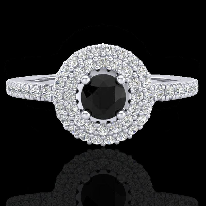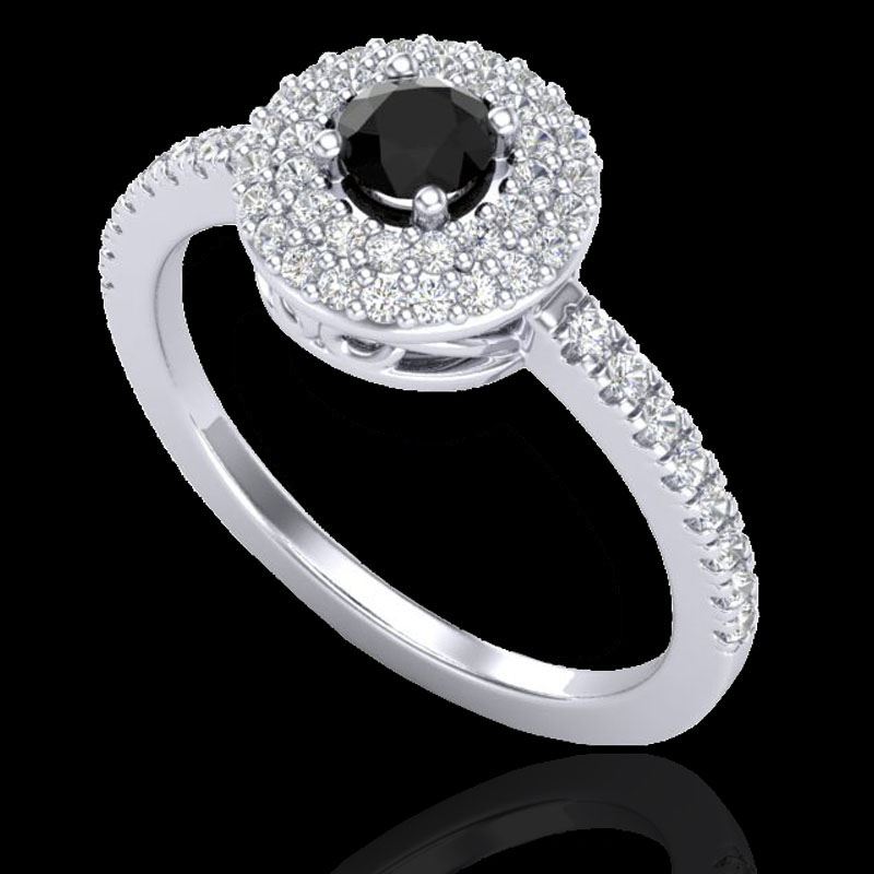 0.80 CTW Micro VS/SI Diamond Designer Ring 18K White Gold ---- Luxury Designer Brand Ring Appraised Retail Price at $3,600 ---- SKU Number US20893 18k White gold Ring Size is 7, Ring measuring approx. 6/16" X 6/16" , weighing in total approx. 4 grams. Made in the USA and is stamped 18k, Main stone 0.35 carat total weight containing 1 pieces of Black Opaque color with VS quality Round shape cut Diamond , Stone #2 0.45 carat total weight containing 52 pieces of H-I color with VS/SI quality Round shape cut
