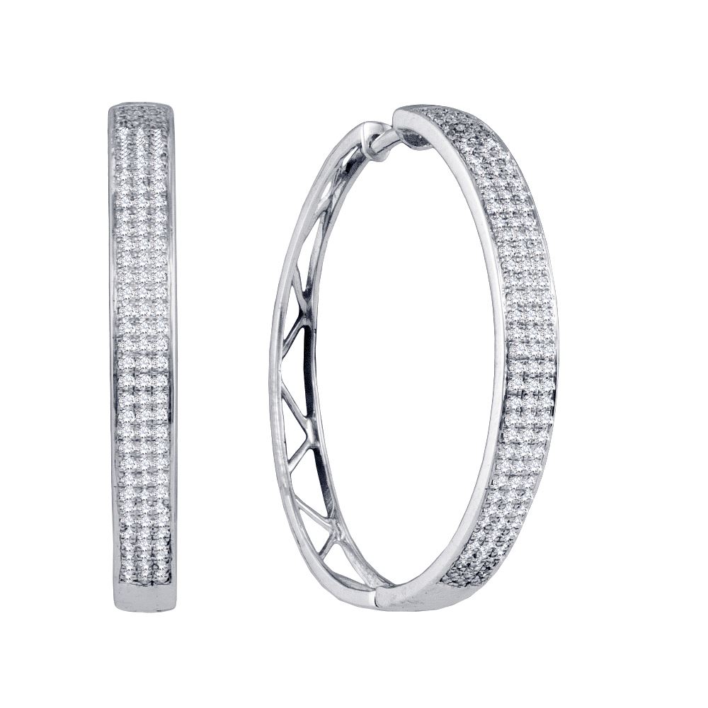REF-79W4K- SKU: GD64592 ---- 0.80 CTWDiamond Large Hoop Earrings 10KT White Gold