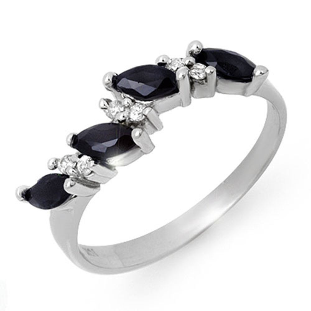 REF-15H3R - SKU: 12875 ---- 0.80 ctw Blue Sapphire & Diamond Ring 10k White Gold