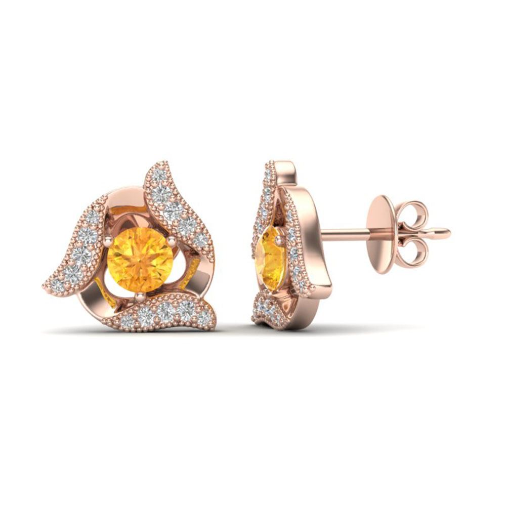 REF-27M5G - SKU: 20005 ---- 0.80 ctw Citrine & Micro Pave VS/SI Diamond Earrings 14k Rose Gold