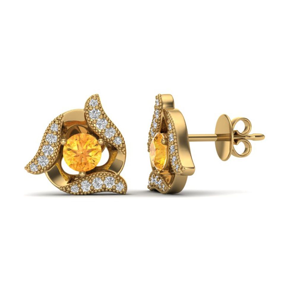REF-40F4M - SKU: 20007 ---- 0.80 ctw Citrine & Micro Pave VS/SI Diamond Earrings 18k Yellow Gold