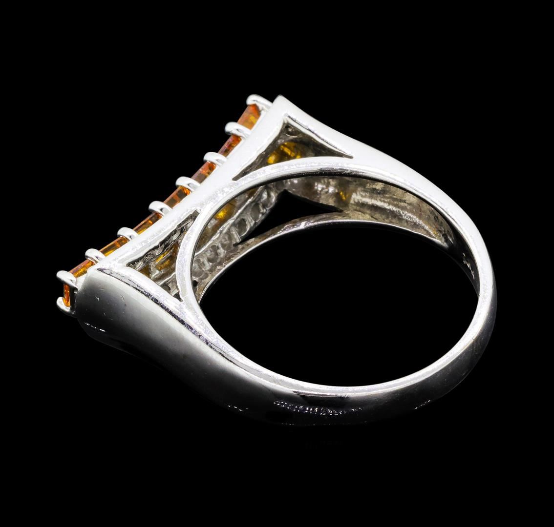 One lady's ring featuring: 14KT white gold weighing 5.8 grams containing citrine quartz weighing 0.80ctw and diamonds weighing 0.25ctw.