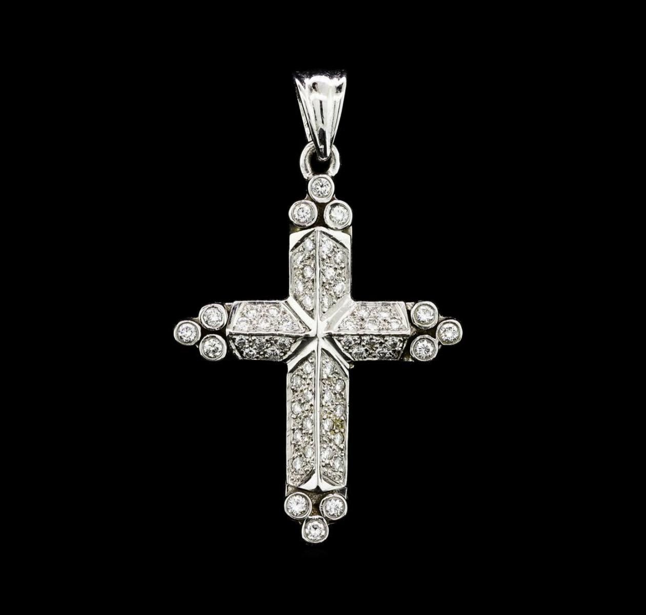 One lady's cross pendant featuring: 14KT white gold weighing 5.9 grams containing diamonds weighing 0.80ctw.