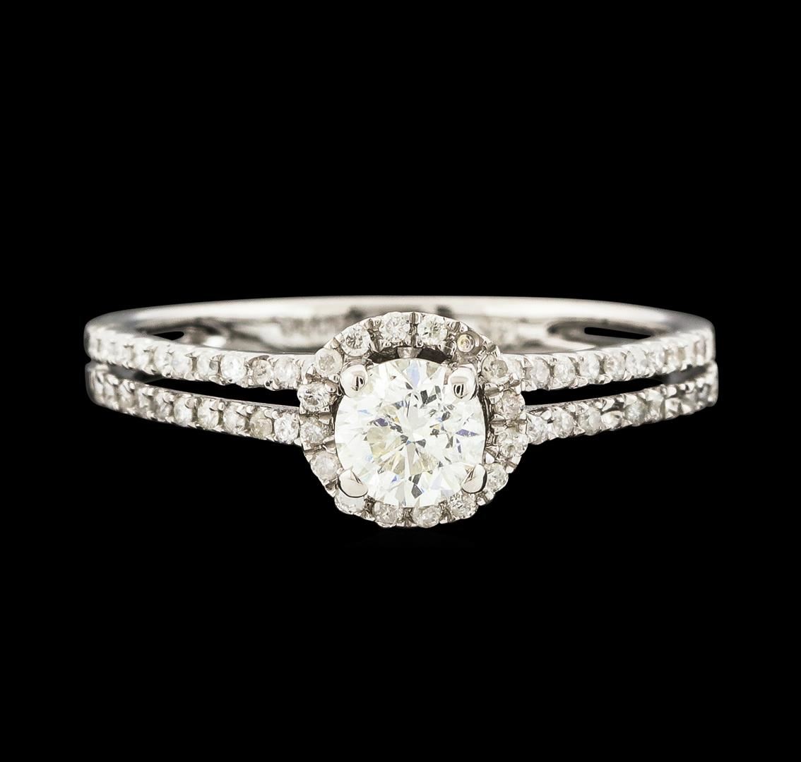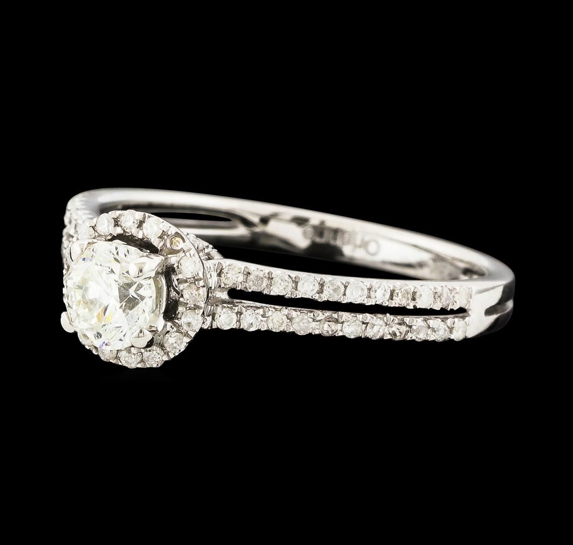One electronically tested 14KT white gold lady's cast wedding ring with a split shank basket halo with a bright polish finish. The featured lady's ring has a shank measuring 2.08 millimeters wide. Trademark is Orianne. Identified with markings of '14K'. Condition is new, good workmanship. Containing: One prong set round brilliant cut diamond, measuring 4.70 - 4.69 x 3.20mm (depth est.) approximate weight of 0.45ct. Graded in the setting. Clarity SI-3. Color: I Cut Very Good Eighty-Four prong set round brilliant cut diamonds, measuring 1.10 - 1.00 x 0.63mm (depth est.) approximate total weight of 84 Stones = 0.35ct. Graded in the setting. Clarity I-1 to I-3. Color: G - I Cut Good. Total Weight of Diamonds 0.80ct.. Total Weight of Ring 2.90gm. GAS Appraised at $3,145.00.