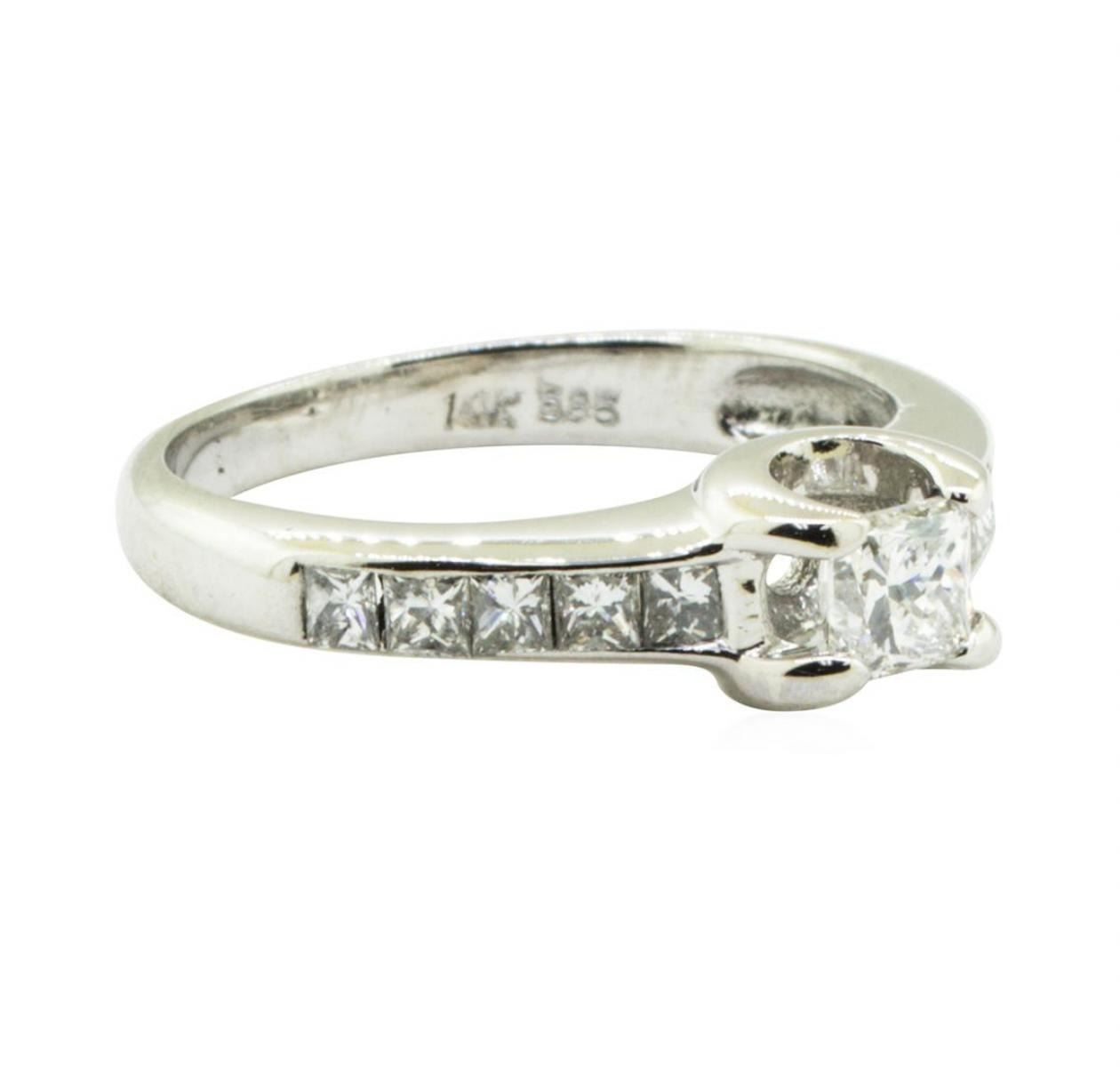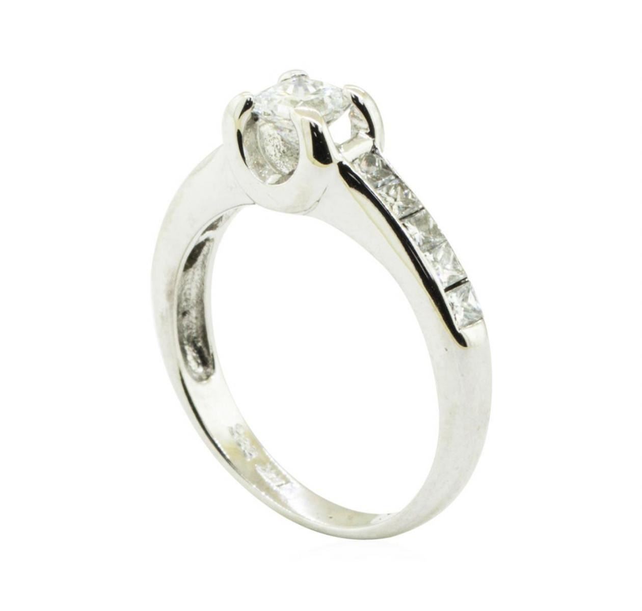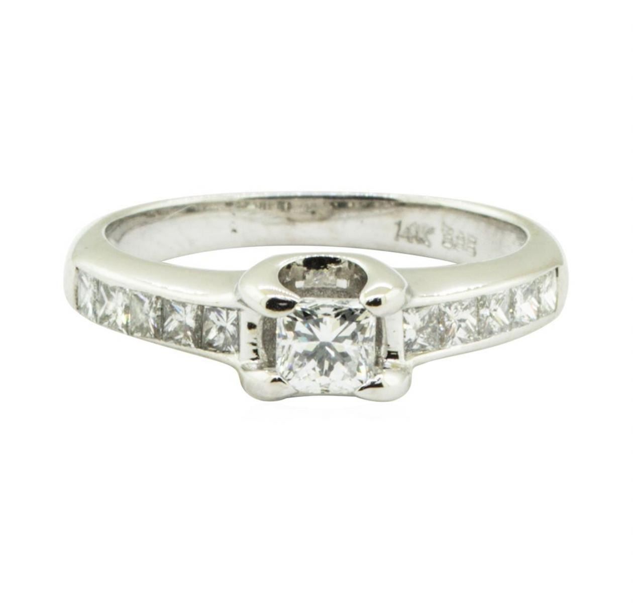 One ring featuring: 14KT white gold weighing 3.0 grams containing one center diamond weighing 0.30 ct and side diamonds weighing 0.50 ctw