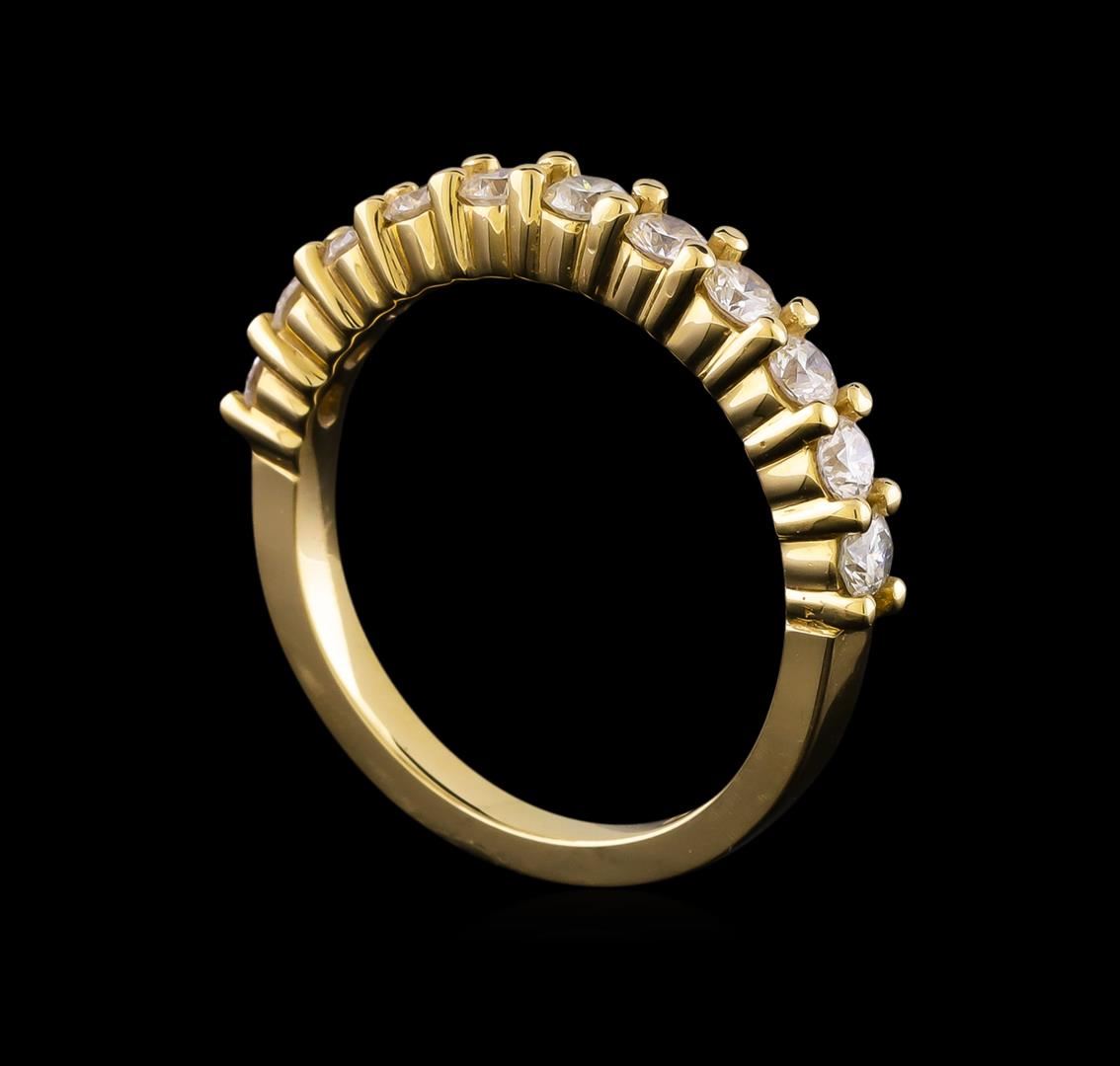 One electronically tested 14KT yellow gold lady's cast wedding ring with a straight line with a bright polish finish. The featured lady's ring has a shank measuring 2.14 millimeters in width. Identified with markings of '14K'. Condition is new, good workmanship. Containing: Eleven prong set round brilliant cut diamonds, measuring 2.70 - 2.65 x 1.66mm (depth est.) approximate total weight of 11 Stones = 0.80ct. Graded in the setting. Clarity VS-1 to VS-2. Color: H - I Cut Very Good. Total Weight of Diamonds 0.80ct.. Total Weight of Ring 3.50gm. GAS Appraised at $2,960.00.
