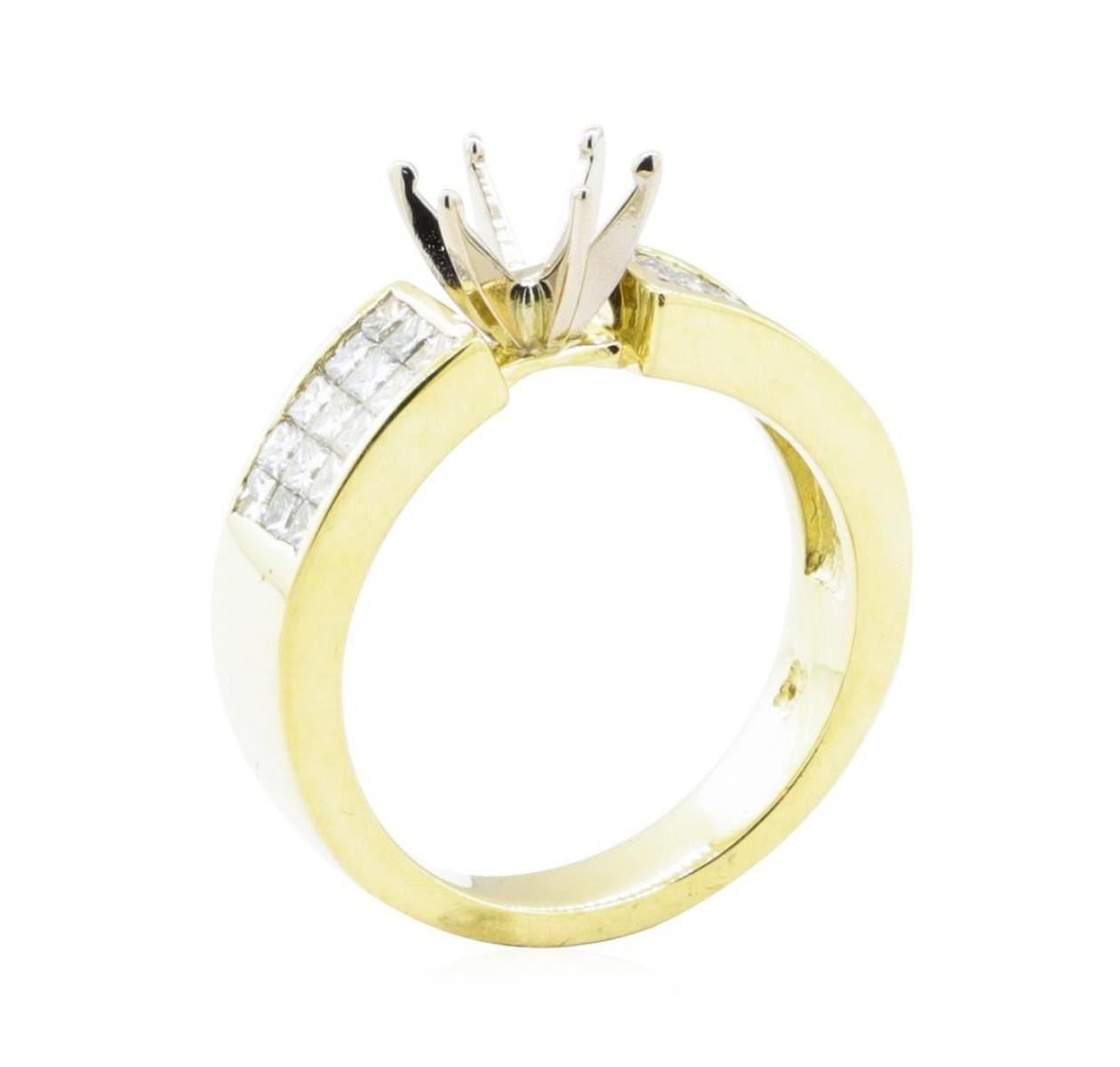 One semi-mount ring featuring: 18KT yellow gold weighing 6.8 grams containing thirty invisible-set princess cut diamonds weighing 0.80ctw.