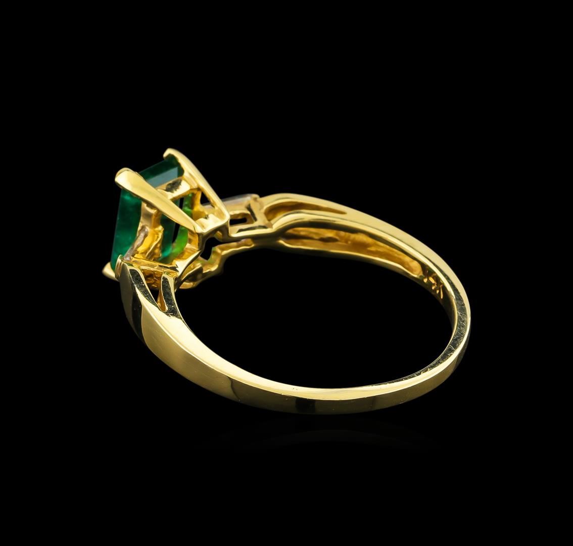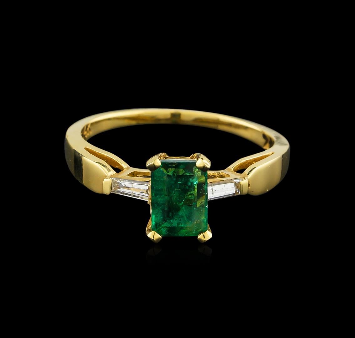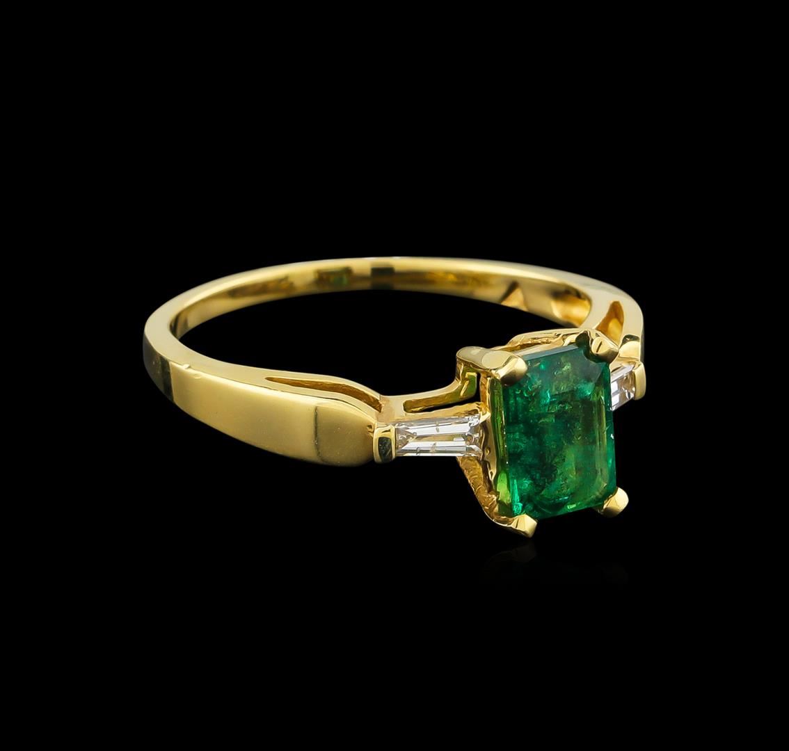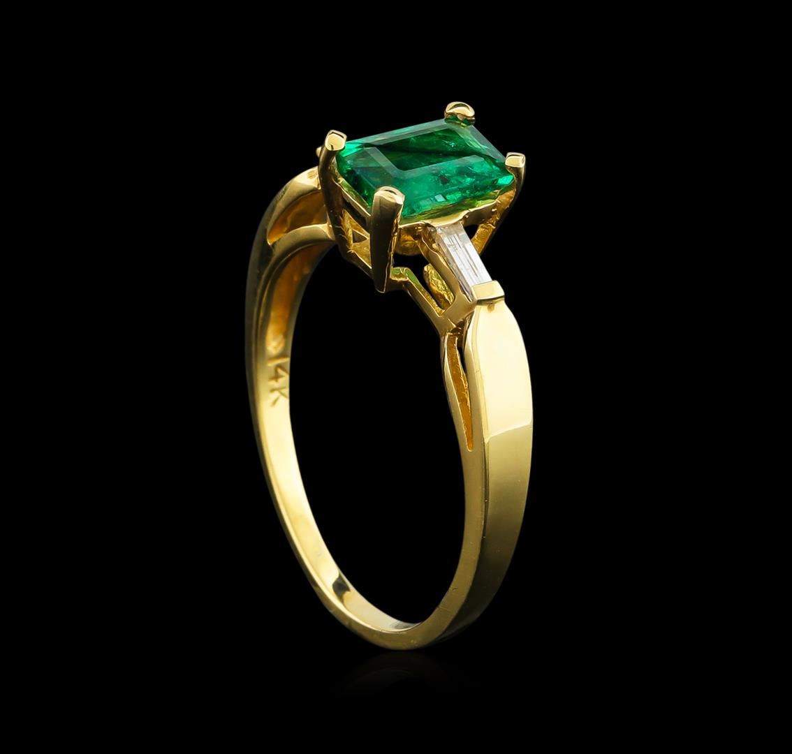 One ring featuring: 14KT yellow gold weighing 2.30 grams containing one emerald center stone with a total weight of 0.80ct and diamonds with a total weight of 0.16ct.