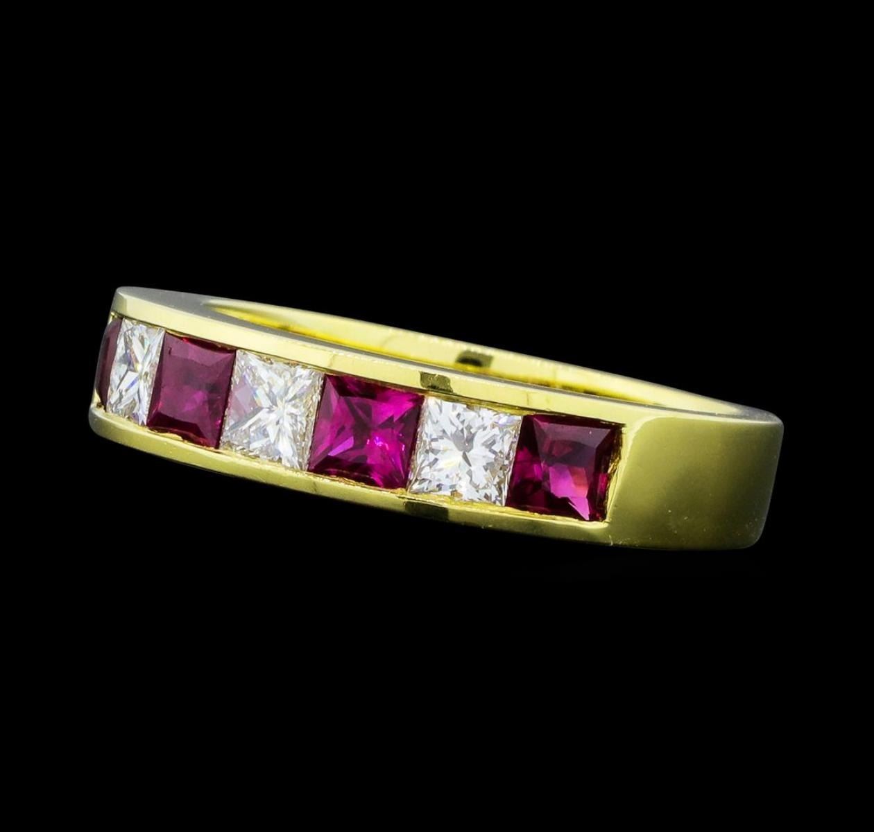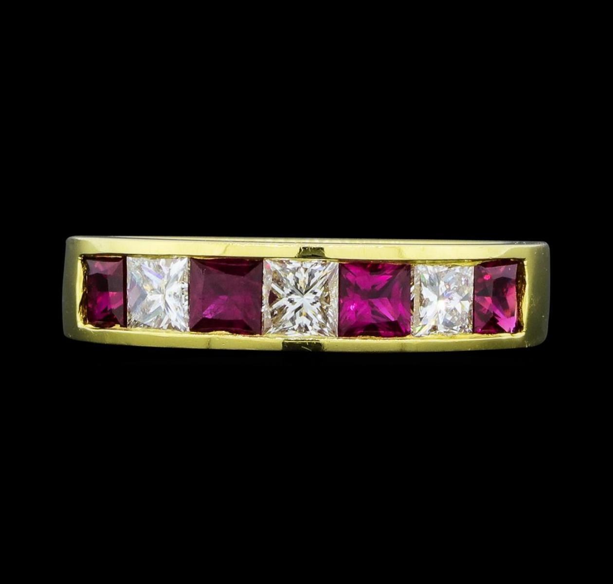 One lady's ring featuring: 18KT yellow gold weighing 7.2 grams containing rubies weighing 0.80ctw and diamonds weighing 0.45ctw.